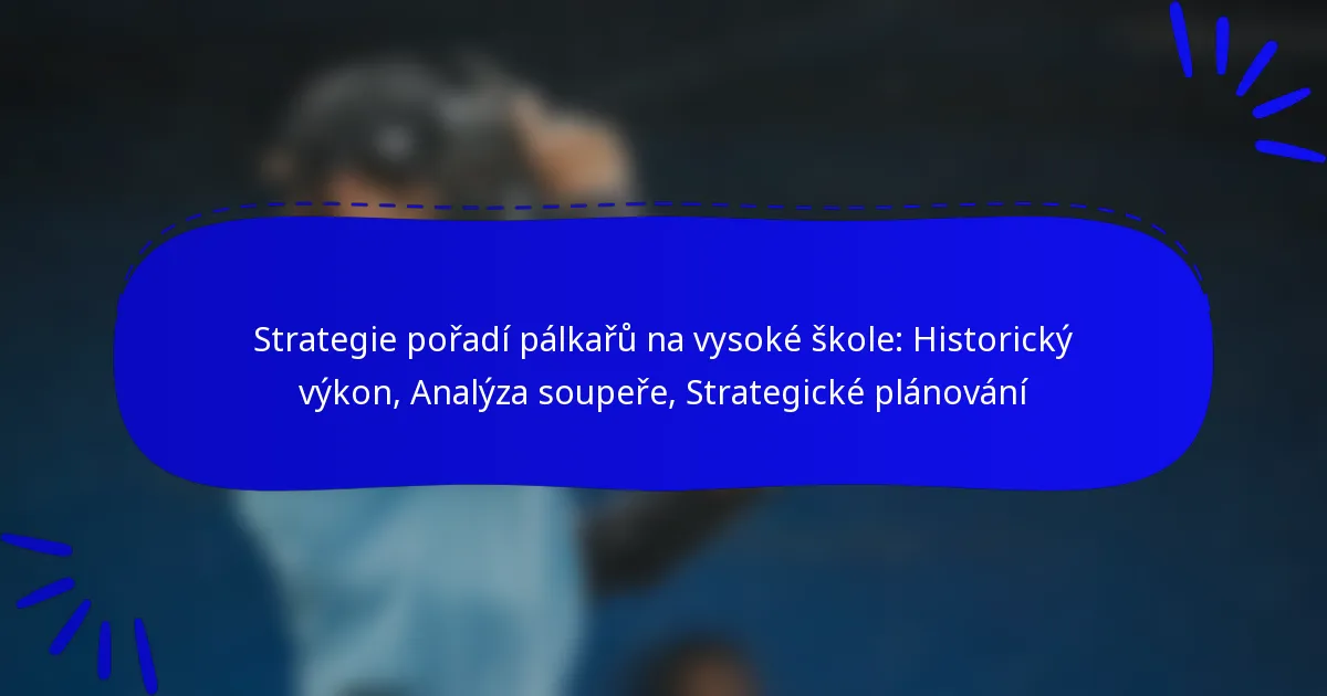 Efektivní strategie pořadí pálkařů na vysokých školách závisí na porozumění silným stránkám hráčů, analýze historických výkonů a přizpůsobení se situacím při pálkování. Tyto komponenty spolupracují na maximalizaci bodových příležitostí a zlepšení výkonu týmu proti různým soupeřům.